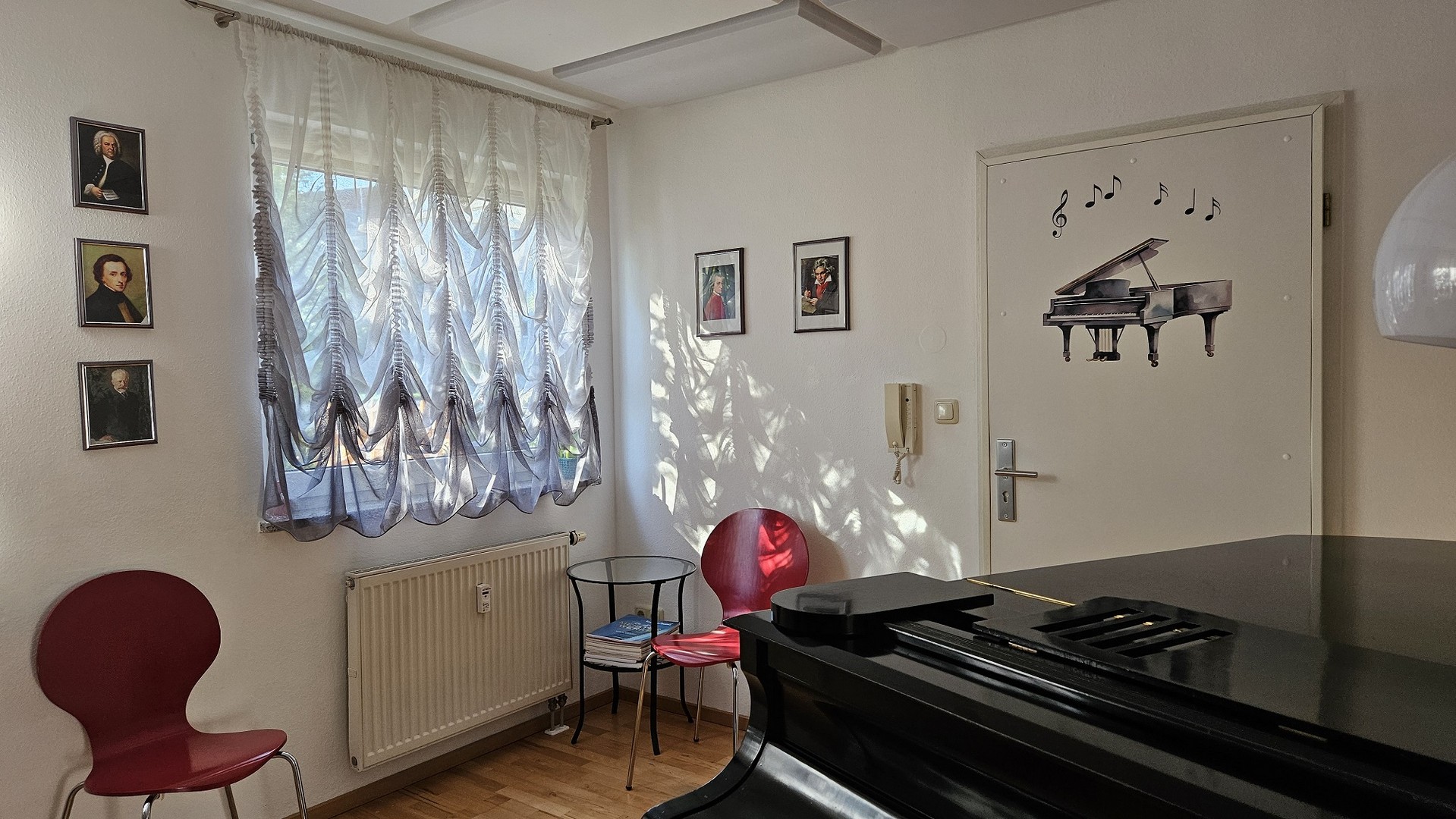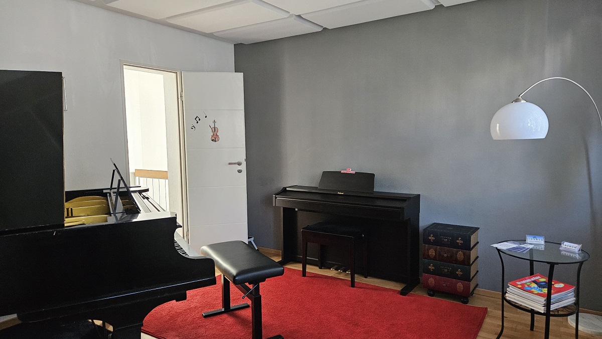 Seit 2021 verfügen wir über zwei weitere Unterrichtsräume im Angerweg in Neubiberg, einen kleinen Unterrichtsraum mit einem Yamaha N1 Digitalpiano und einem großen Unterrichtsraum mit einem neuen Kawai Flügel, welcher auch für Schülerkonzerte genutzt wird.